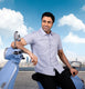 Active Fit Men's Shirt with Diamonds Pattern - Half Sleeves - Ice Blue